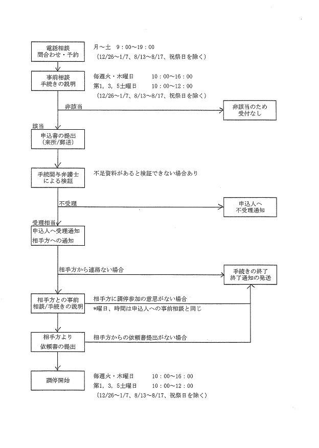 ADRセンターへの利用申込みから調停開始までの手続きは以下のとおりとなります。